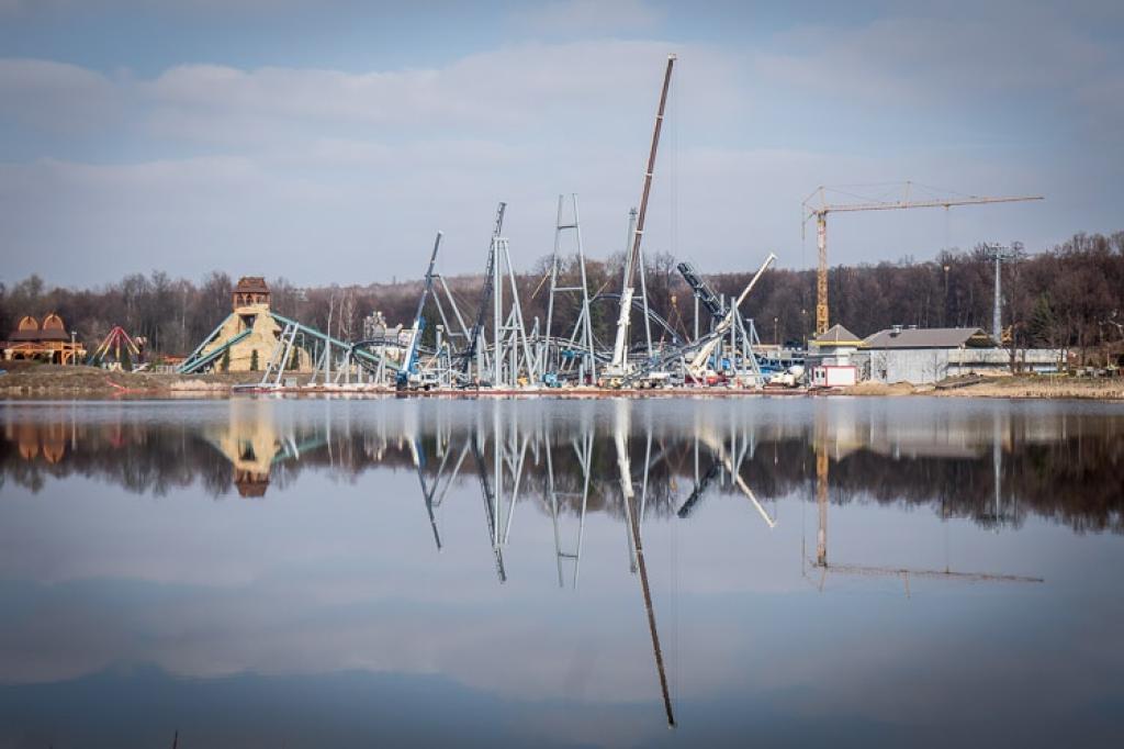 Najwyższe elementy konstrukcyjne największej kolejki górskiej, która powstaje w tej części Europy, montowane były w minionym tygodniu w Śląskim Wesołym Miasteczku